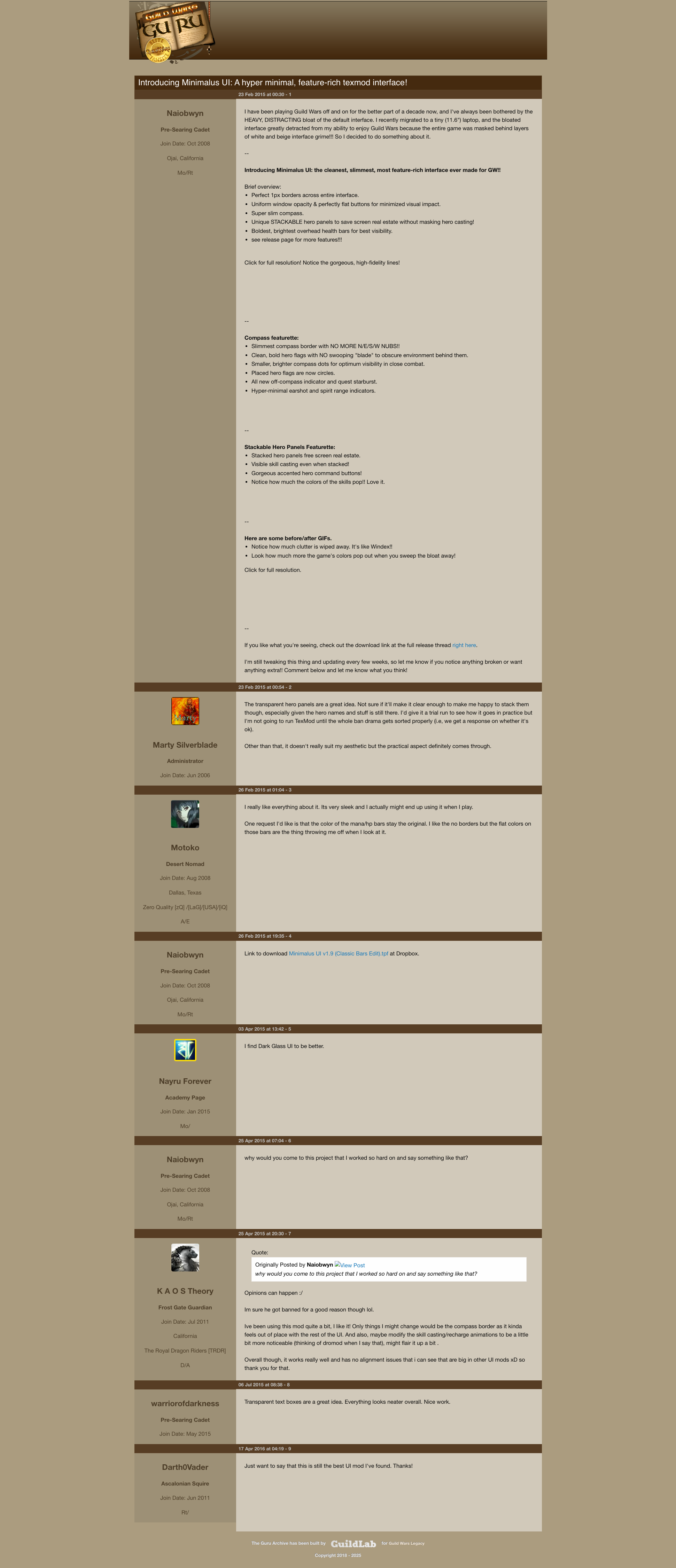 The Guild Wars Guru archives have seen a lot of change over the last few years, going from a huge static HTML file dump to a more modernized and easier browsing experience. Now, we are ready to take the next step and I'm glad to say that a lot of improvements have been made to the archives that will be going live soon.
