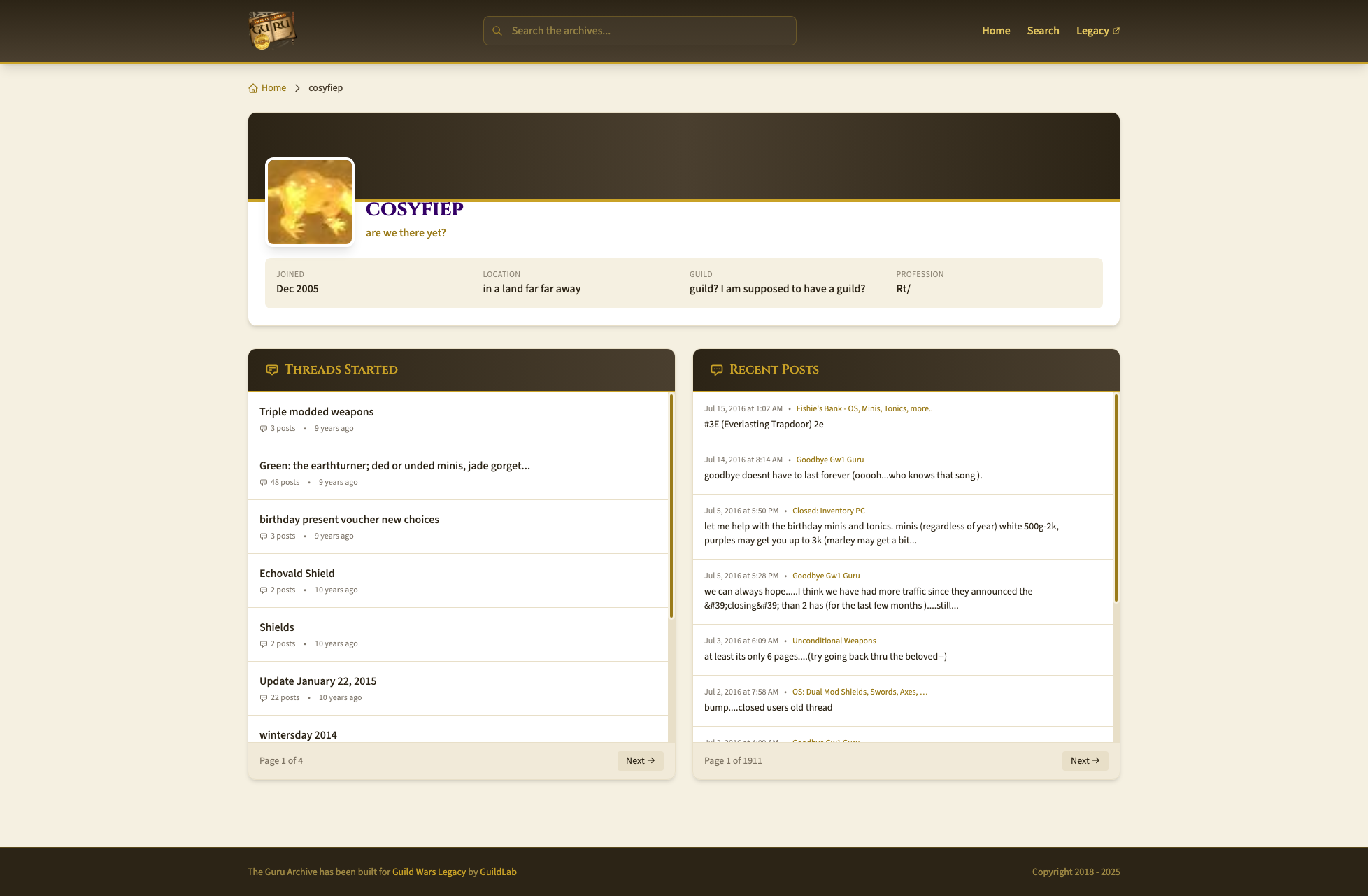 Now, I also wanted to add something completely new to the archive, that ever since Guru went down was no longer possible: sear... no, not search, sorry! But I'm glad to say that the archives now have user pages, where you can easily find posts made by a user: