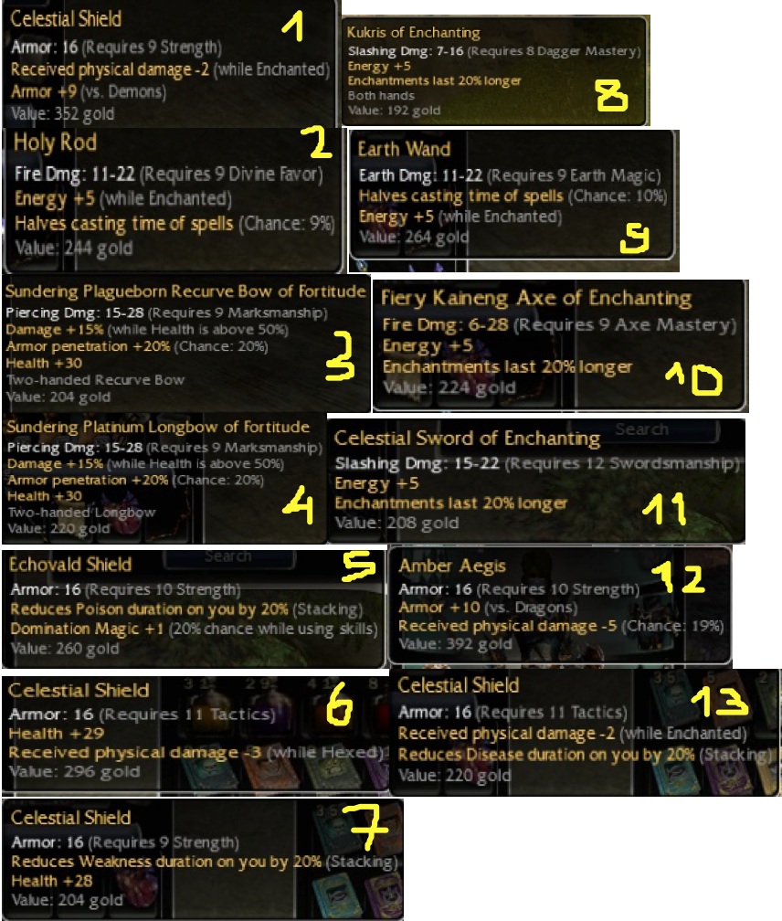 April 14, 2021 at 6:46 PM Changed the title of the thread from “Different OS weapons and shields - q8 daggers, q9 celestial shield, q9 bows” to “Different OS weapons and shields - q9 shields, q9 bows 15^50”. -