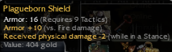 Req9 Plagueborn Shield +10 vs Fire -2/while stance