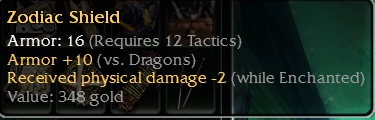 A14) q12 (Tac.) Zodiac Shield +10 vs. dragons / -2 wE - c/o:
