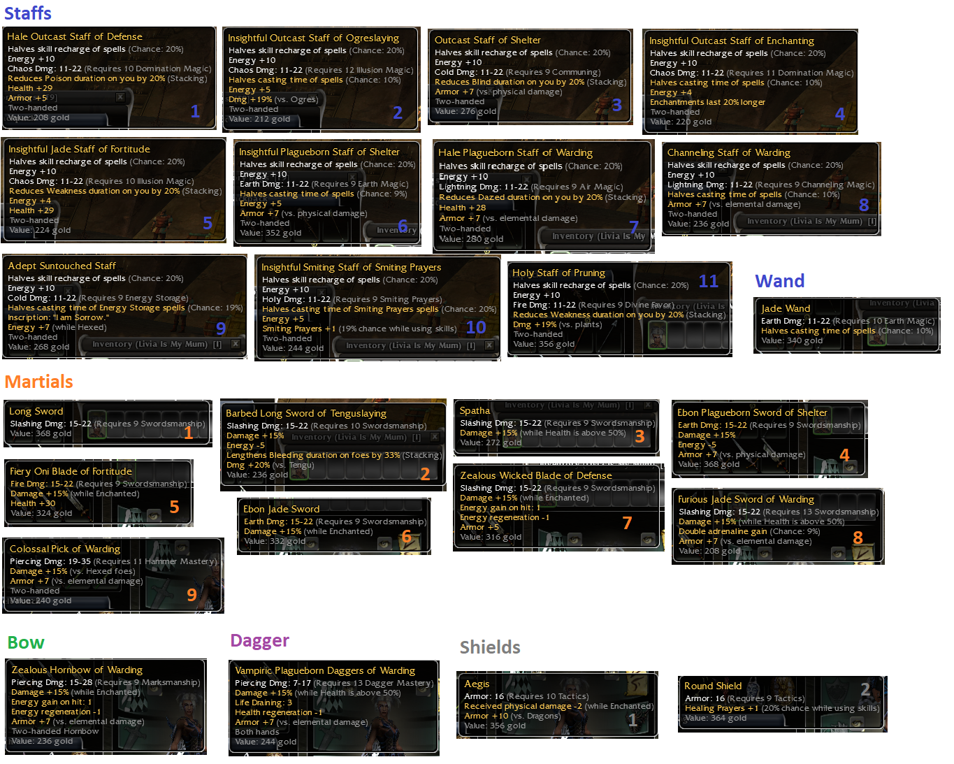 25 x OS Weapons (inc. Outcast 20/10, 20/9, 20/19, 20/20 etc. + Aegis -2/wE +10 vs dragons)
