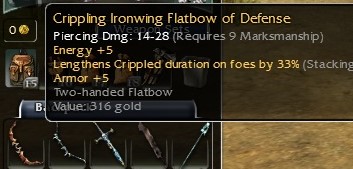 1) Q9 Ironwing Flatbow (14-28) +5e