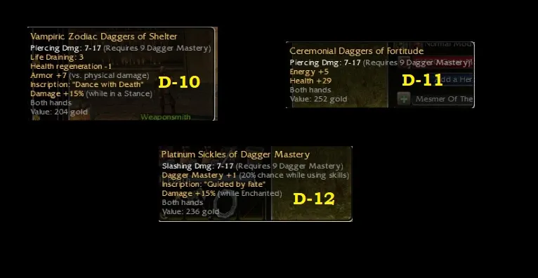 D-11: Ceremonial Daggers (q9) Energy +5 252gv