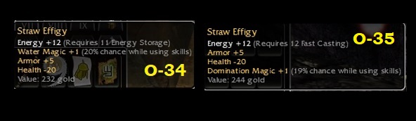 O-34 Straw Effigy (q11 es) Water +1(20%) | Armor +5 HP-20 232gv