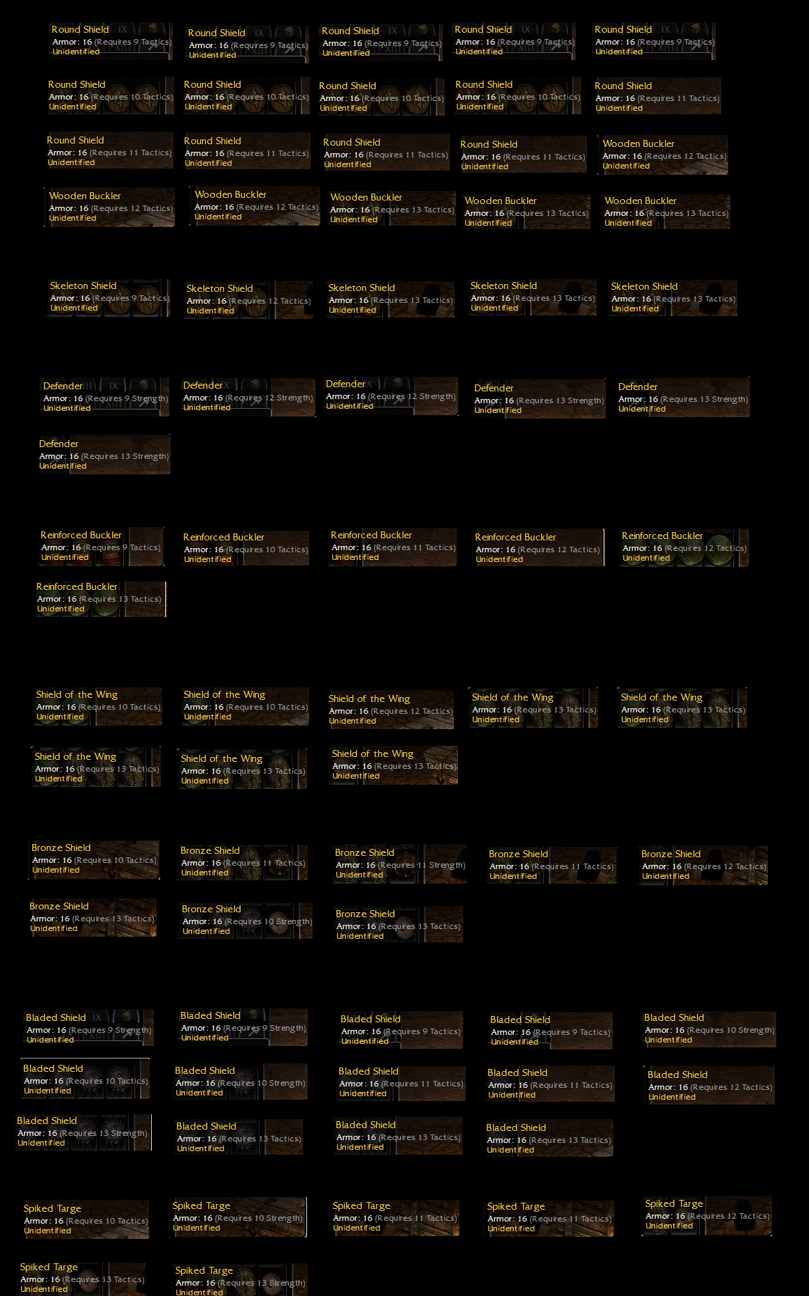 - 20x Round Shields/Wooden Bucklers ( 5xq9, 4xq10, 5xq11, 3xq12, 3xq13)