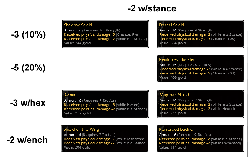 Speaking of old friends, dual reduction shields cannot be mentioned without thoughts of MaxBorken dancing through my head. At times he has been called third brother or the triplet...and at other times he has been called other things. He is the undisputed king of dual reduction shields. His Magnum Opus will either be posted or linked in this thread by necessity. Without it, and without Max, the history of these items is completely incomplete.
