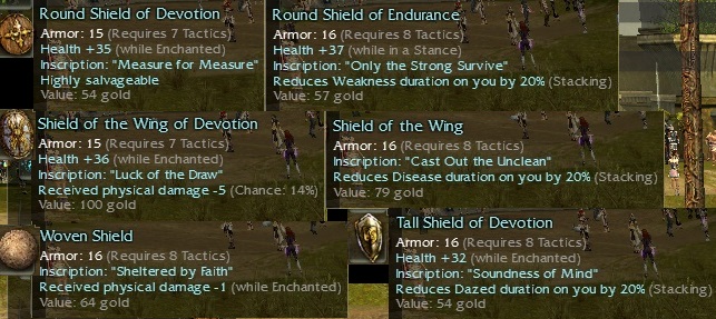 October 1, 2021 at 12:28 PM #1 Hello,I'm selling some blue low req inscribable shields for you PVP guys out there. 4x Round Shield Q7 15AR - 2 left1x Round Shield Q8 16AR - 1 left2x Shield of the Wing Q7 15AR - all sold1x Shield of the Wing Q8 16AR - sold1x Woven Shield Q8 16AR - 1 left1x Tall Shield Q8 16AR - 1 left