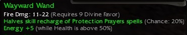 • Yep, the specific combo : DF/prot is prenerf on green wayward. The current version that you can still get in game is Prot/prot with holy damage (you can check the full list of prenerf green here : https://guildwarslegacy.com/forum/thread/11457-greens/)