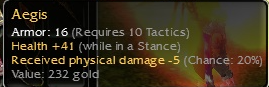 The Aegis is dual mod but the 41stance mod is 4hp off max and Q10. You may be able to find someone in Kamadan who will give you 1-5e but it will take a long time to find this person (if you even ever find it). I would merch it.