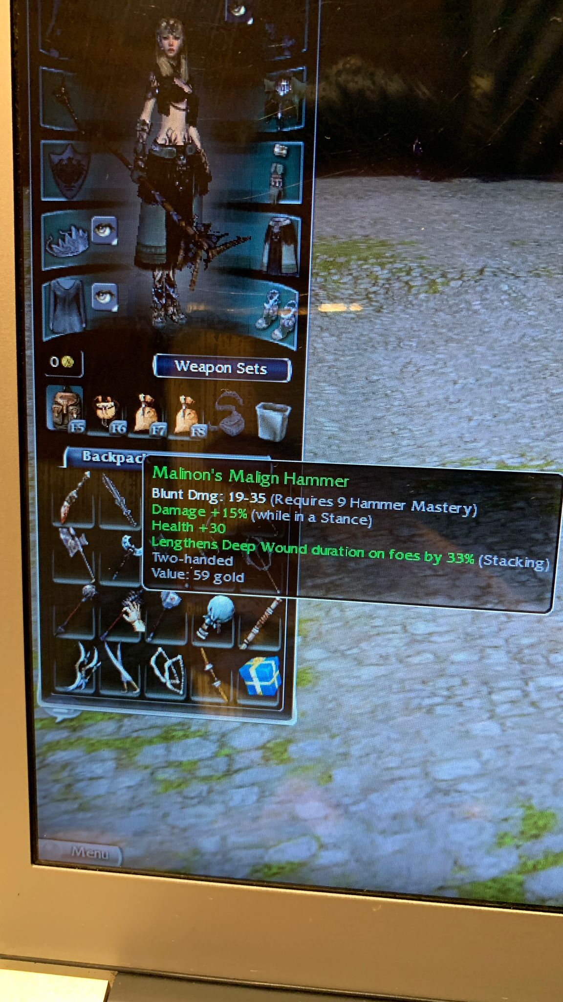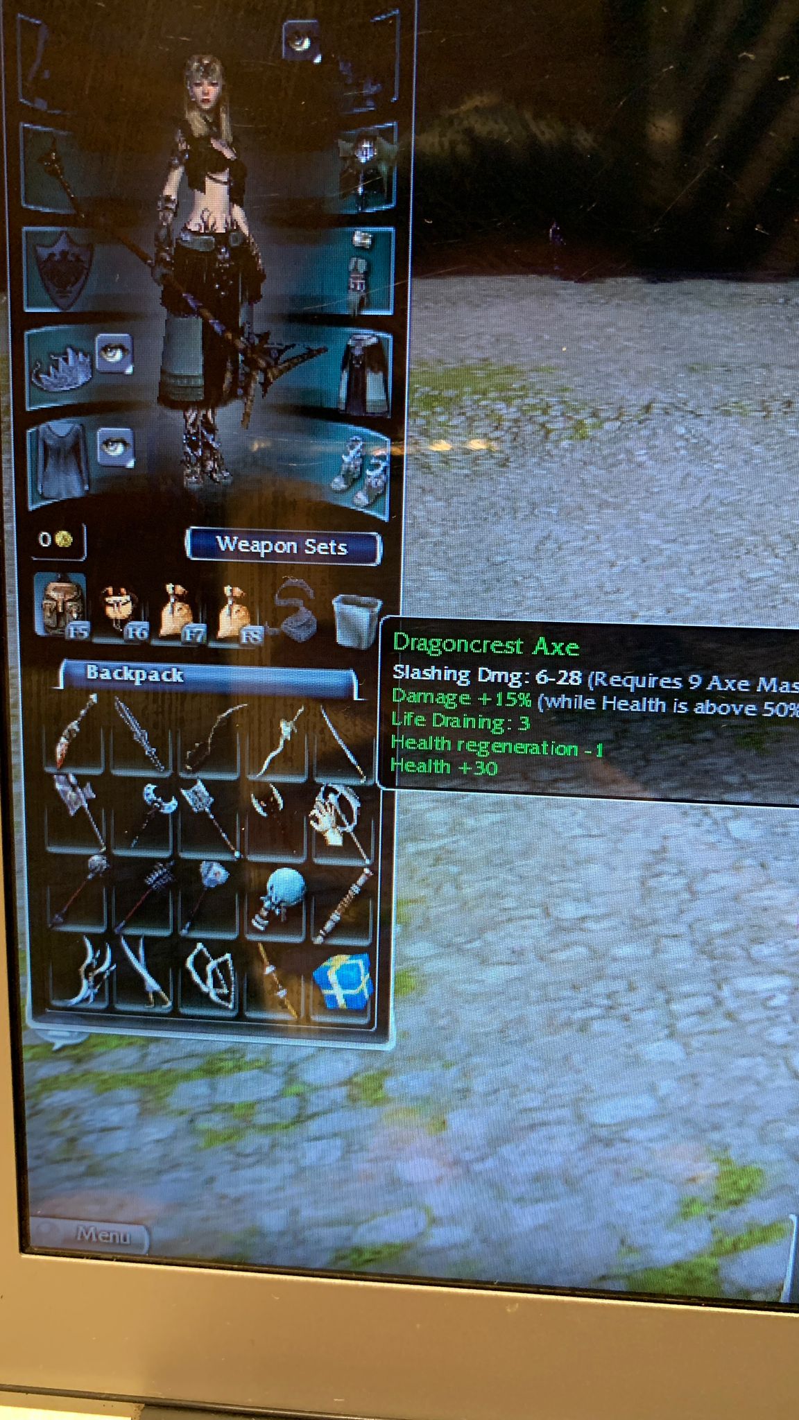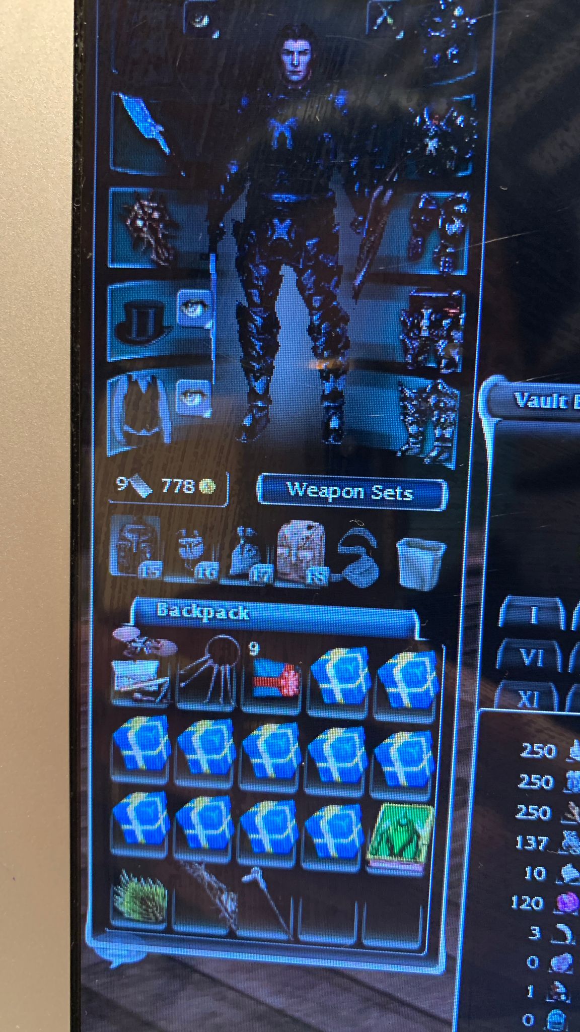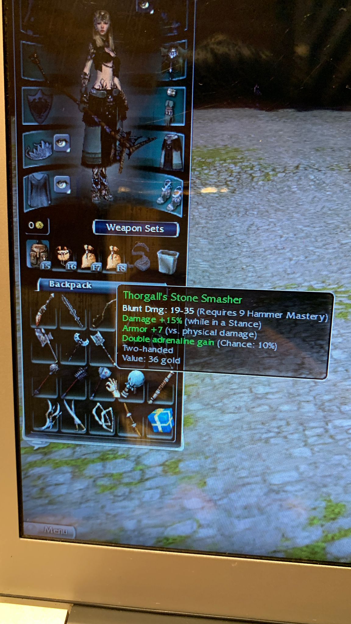 I’m gonna buy more storage space, play the game a little and continue with taking more pics of axes, wands, staffs, greens, off-hands etc...
