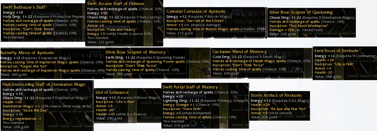 Pre nerf / OS items Q8/9 Plus Sheilds / Swords / Martial Weapons / Caster items