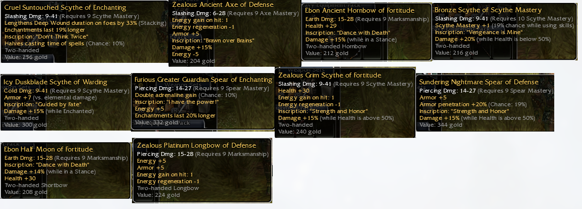 OS items (Collected from heroes etc - let me know if they aren't OS)