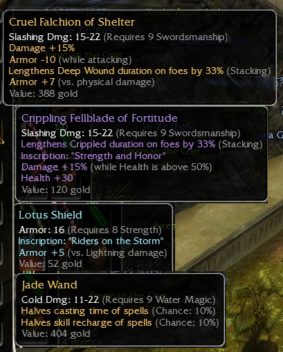 Q8 Strength Lotus Shield / Inscribable Fellblade / OS Jade Wand (Q9 Water) / OS Falchion