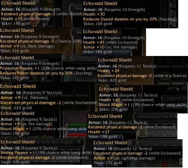 Echovald Shield Q9 Tac +9 Demon -2 W/E 80e