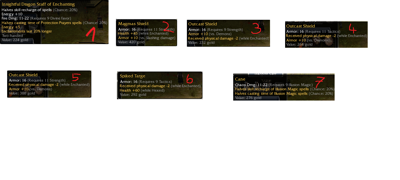 "Closed" OS Shields / Magmas / Outcast / Spiked Targe / OS Dragon Staff