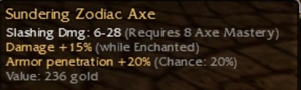 Zodiac Axe Q8 max dmg 15/ench