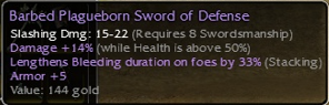 Bladed q9t -2 w/e + 10 vs blunt sold 20a