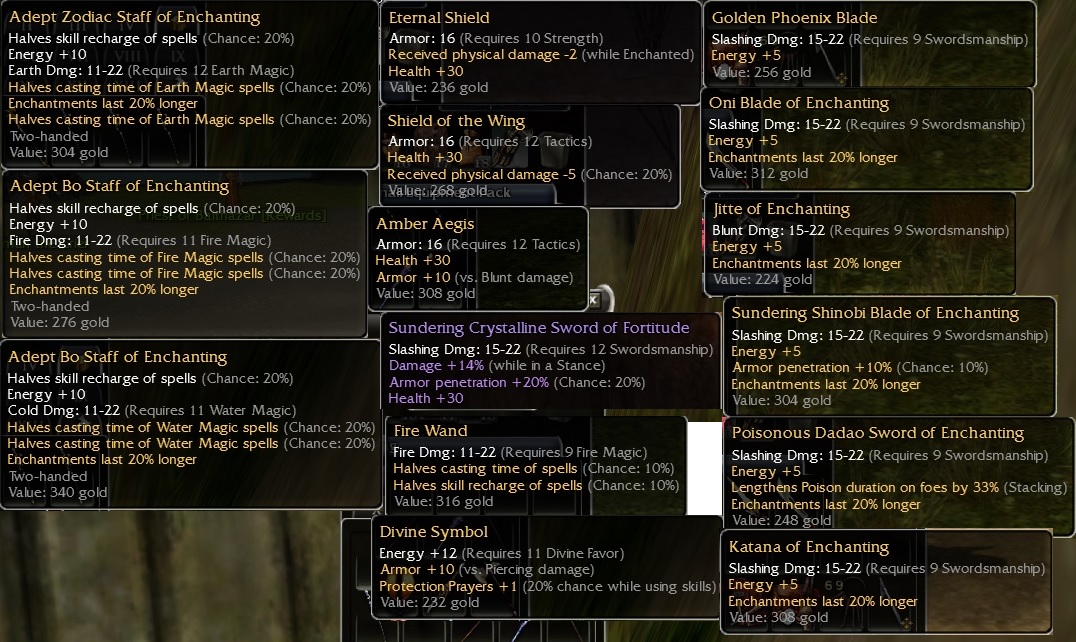 I guess the staffs are decent, but suffer from the high req. Same for the shields I guess.
