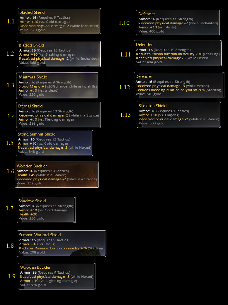 #1.4 = Eternal Shield q10/16 Str -2/stanace 10vs piercing