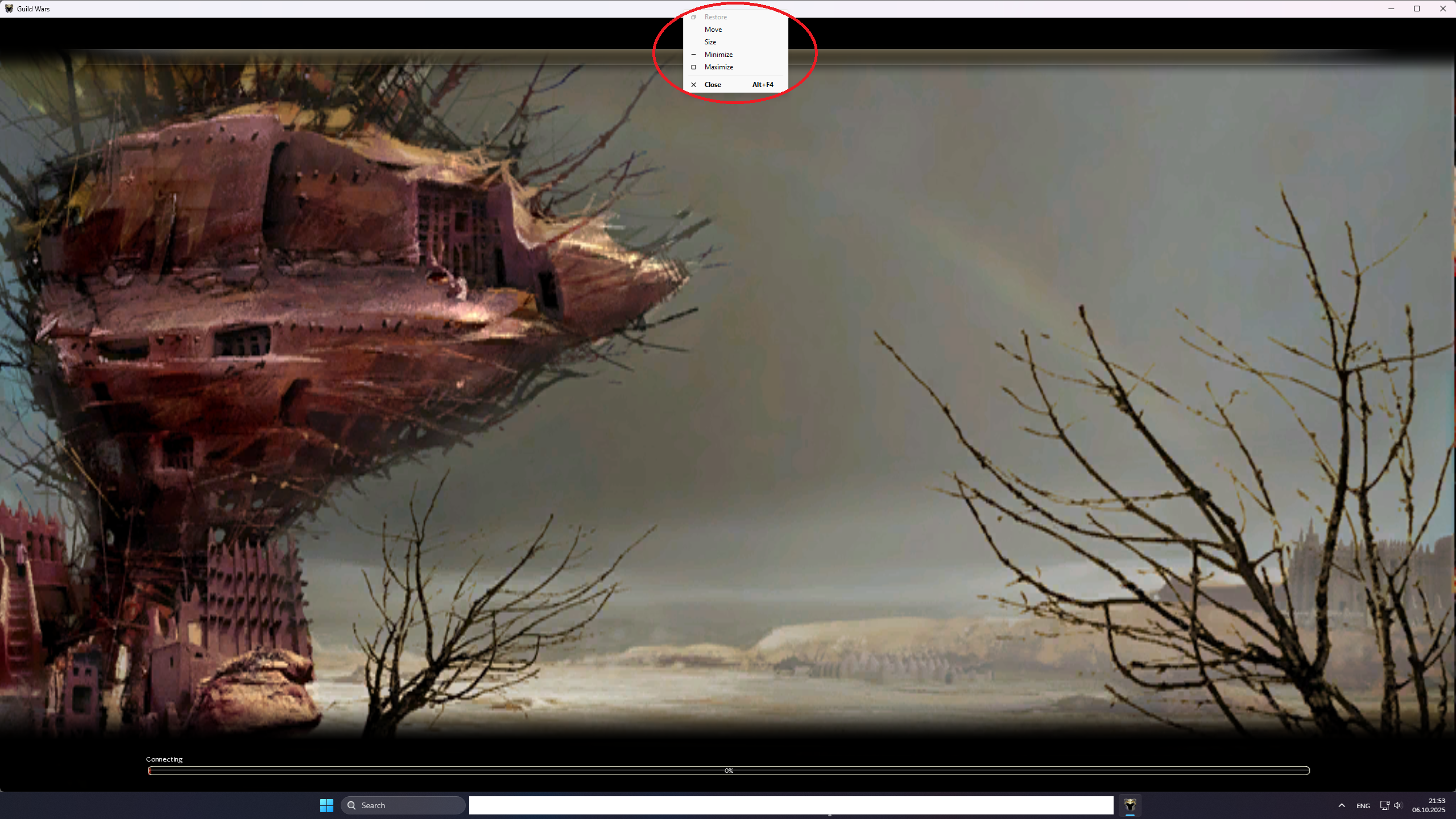 You may not know it, but during download when Guild Wars is in window mode, if you right click on the upper ribbon of the window, in order to make the corresponding drop-down menu appear and leave your mouse cursor as it is with the window in the foreground. Miracle the download stops! To unlock it left click on the top ribbon again: