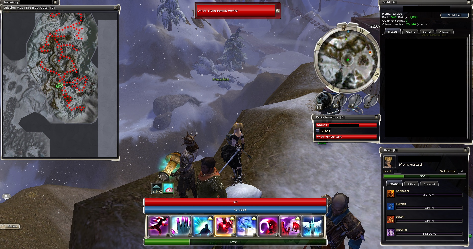 Summary: Kaineng -> Maatu Keep -> Boreas Seabed -> Zos Shivros Channel -> Breaker Hollow -> Gyala Hatchery (1000xp) -> Leviathan Pits -> Unwaking Waters (Luxon) -> Unwaking Waters (Kurzick) -> Vasburg Armory.