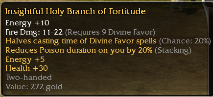- Holy Branch, q9 divine favor, hct divine favor 20%, poison 20% stacking (no HSR)