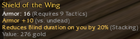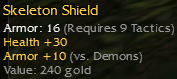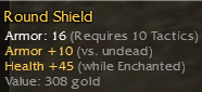 | #405 | ![]() | ![]() | Eternal Shield | Strength | Q12 | 16 | -2 Ench | +10 undead | 280 gold | 5A |