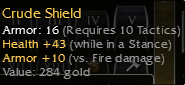 Crude Shield R10/A16 tactical +10vs Fire +43hp stance