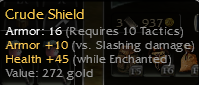 Crude Shield R10/A16 tactical +10vs Slashing +45hp ench