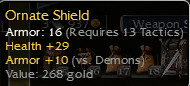 Ornate Shield R13/A16 tactical +10Demons +29hp