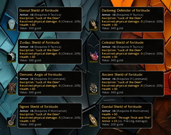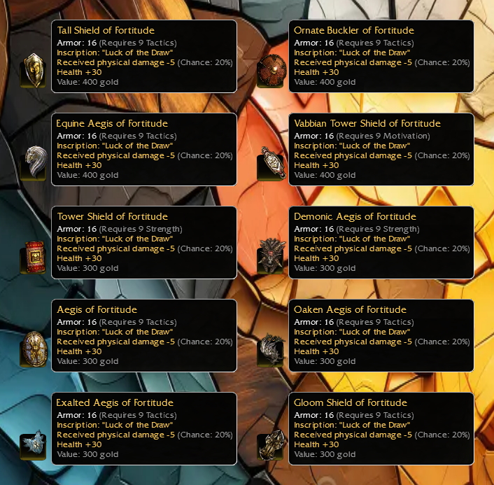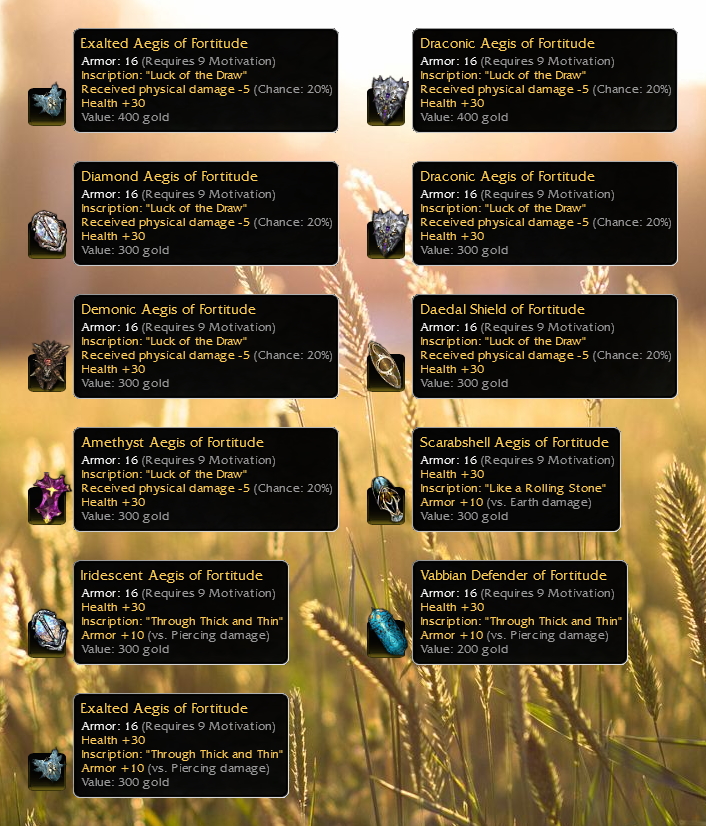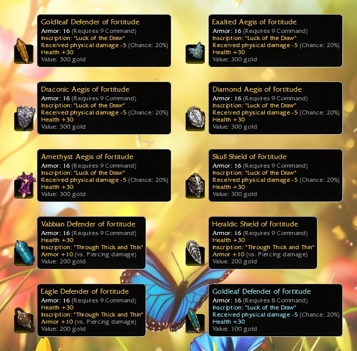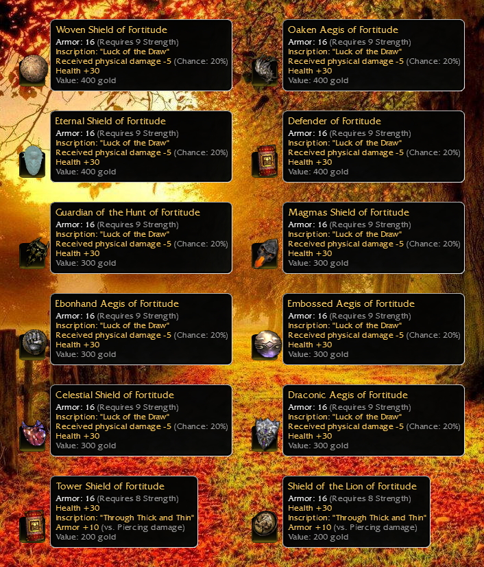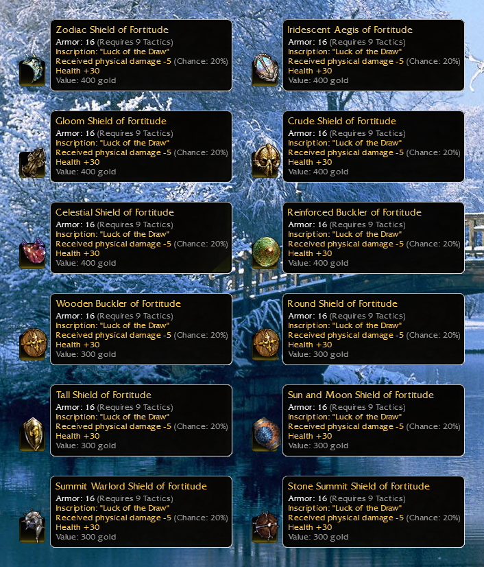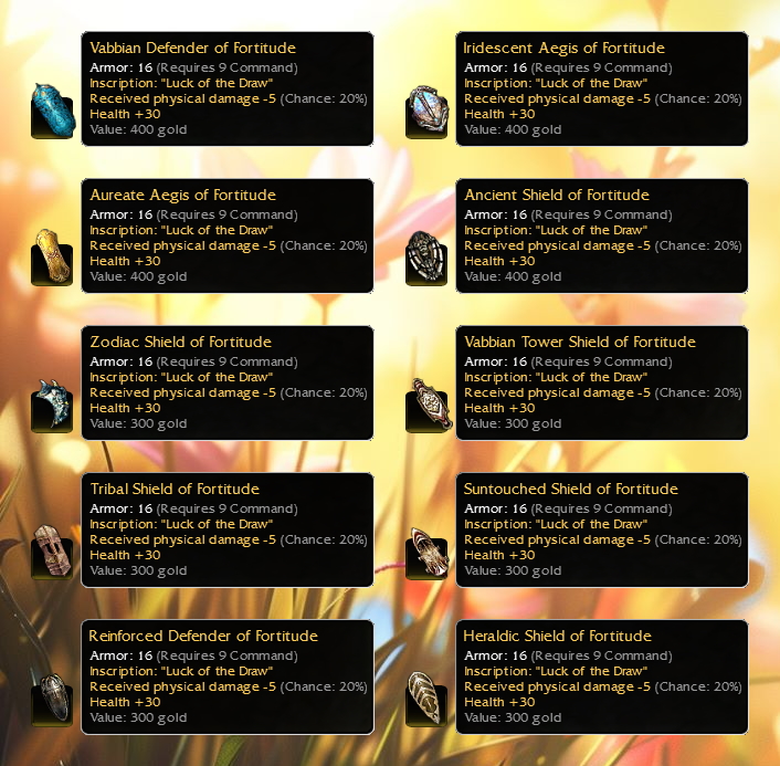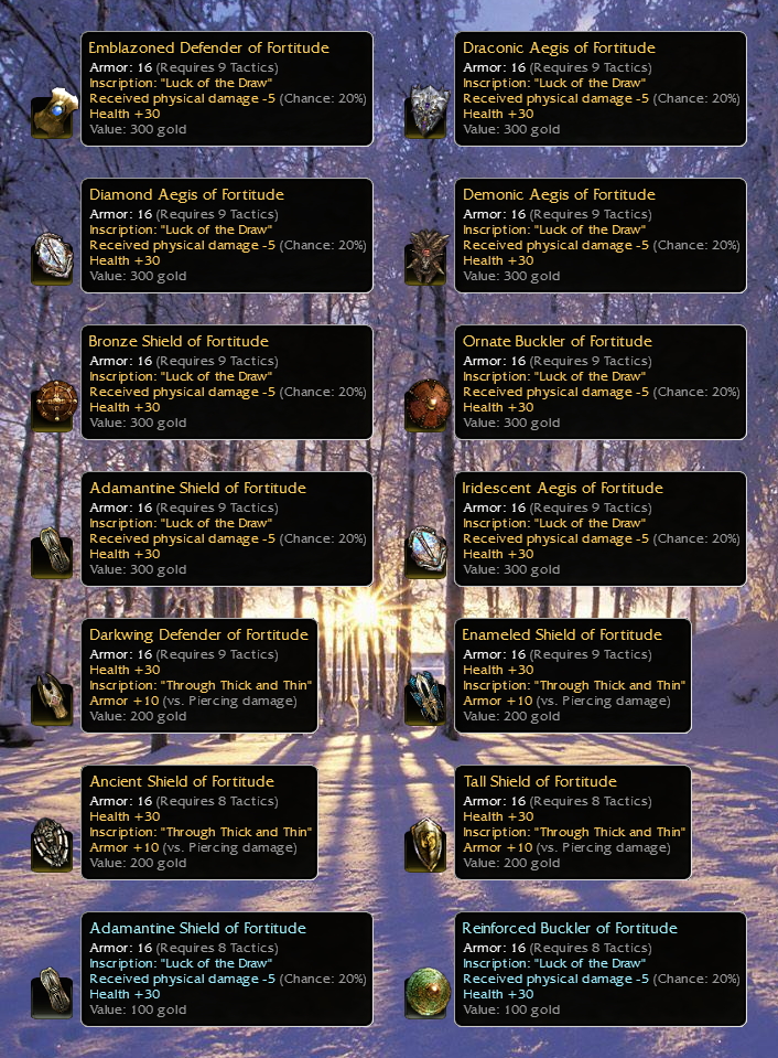 I love shields, and many of my favorite skins come only in inscribable versions. I wanted to collect them, but in a special way. That's how I started this collection. So without further ado: