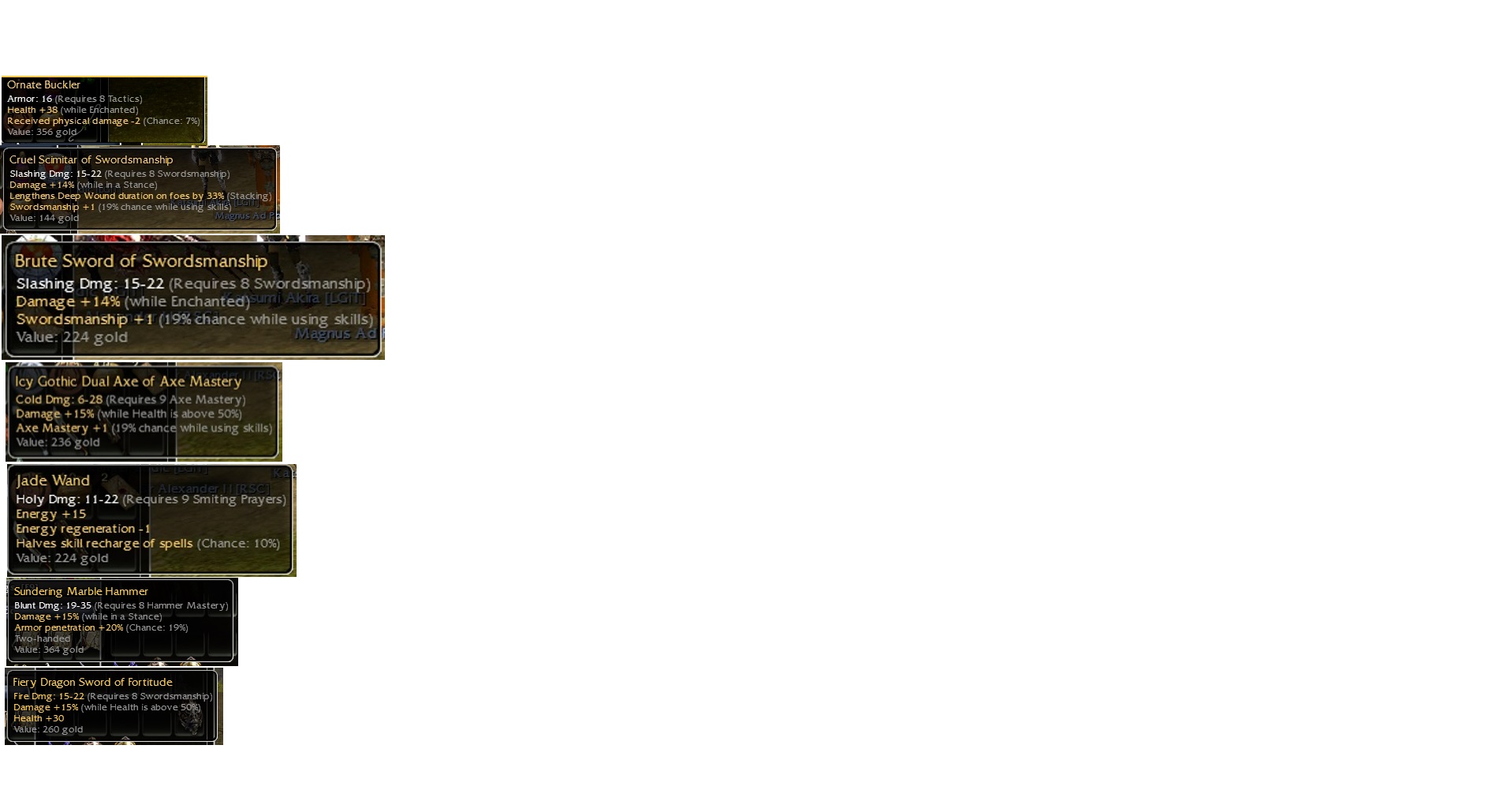 jade wand and gothic axe are legit no rb, need space.