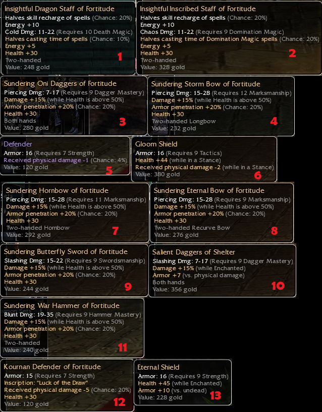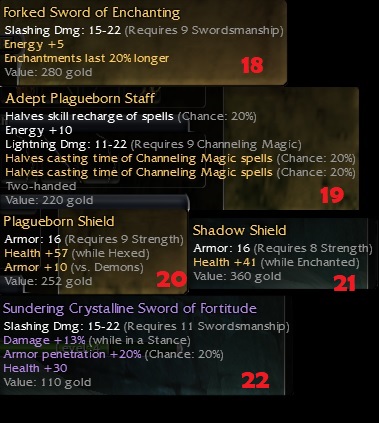 • ^ Neither of the purple crystallines are prenerf, unfortunately. The only ones that are are the q8 shadow shield and q7 defender (and the war hammer, if and only if it has the ram's hammer skin). Of the rest, the undead eternal shield is the biggest draw, followed by the q9 caster chaos axe.