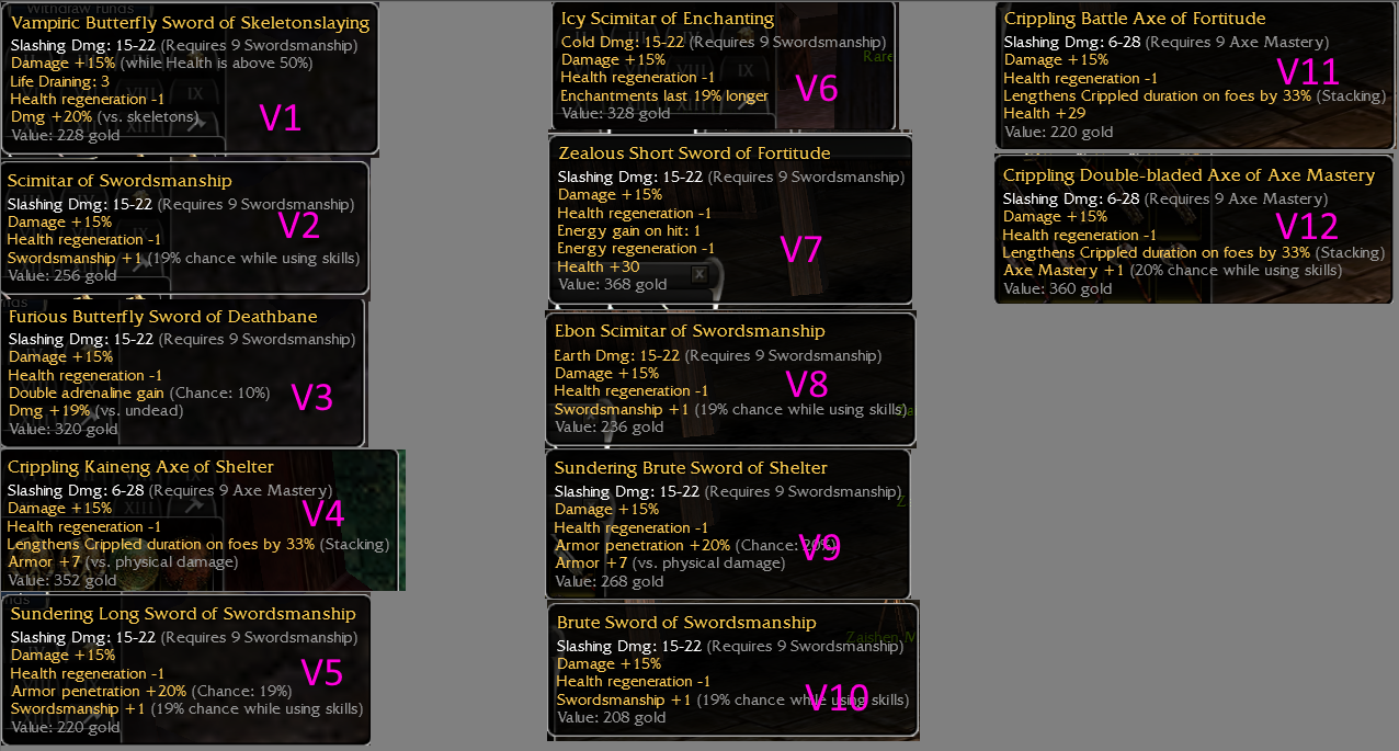 | V2: 50e Abaddon | V7: 50e Excite Blue | V12: |