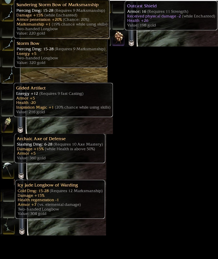 Outcast Shield no idea, there are purp collectors,R11 may be an issue