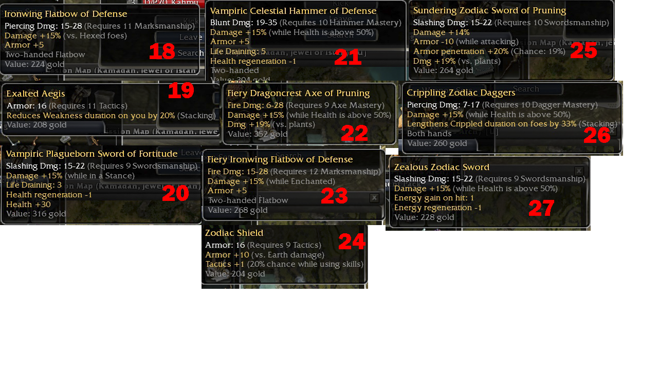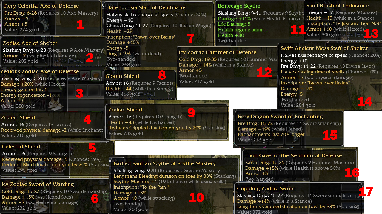 #24 has highest value imo. Gavel/dragoncrest are more likely 10-20e. Difficult to sell postnerf 15/50 axes and mauls nowadays. Even sword is hard.