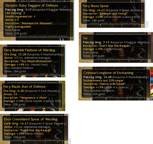 Only Q9 will have somewhat a value for inscr weapons (excluding donjons final chest drop / rare skins...)