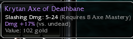 Damir July 9, 2023 at 7:07 PM Changed the title of the thread from “WTS purple q8 Krytan axe 5-24 dmg 17%vs Undead” to “CLOSE PLEASE WTS purple q8 Krytan axe 5-24 dmg 17%vs Undead”.