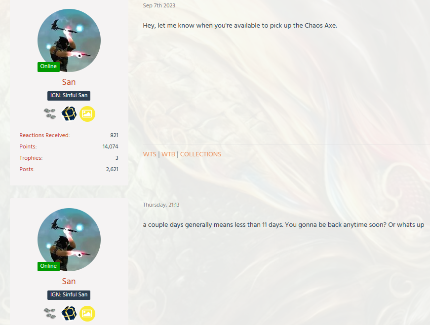 September 3, 2023 at 10:28 AM Changed the title of the thread from “q8 14^50 Fellblade” to “q8 15^50 Chaos Axe”. -