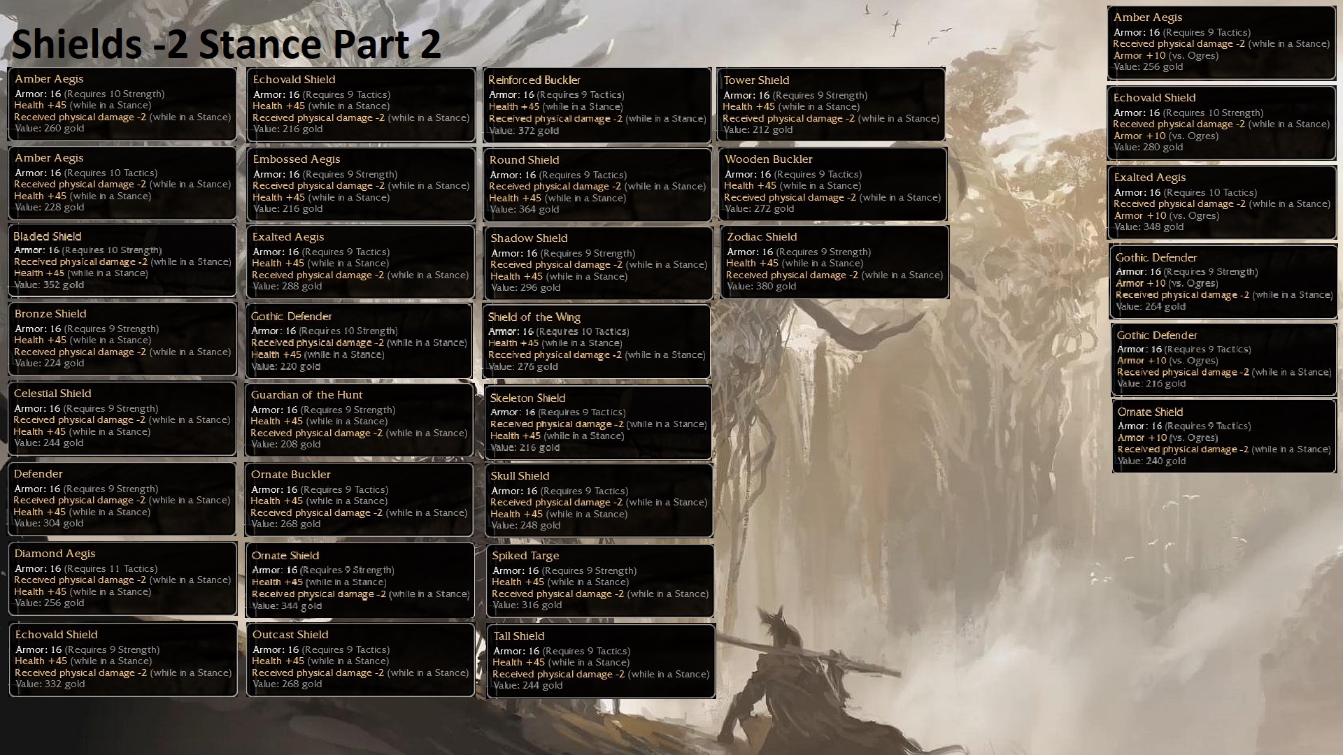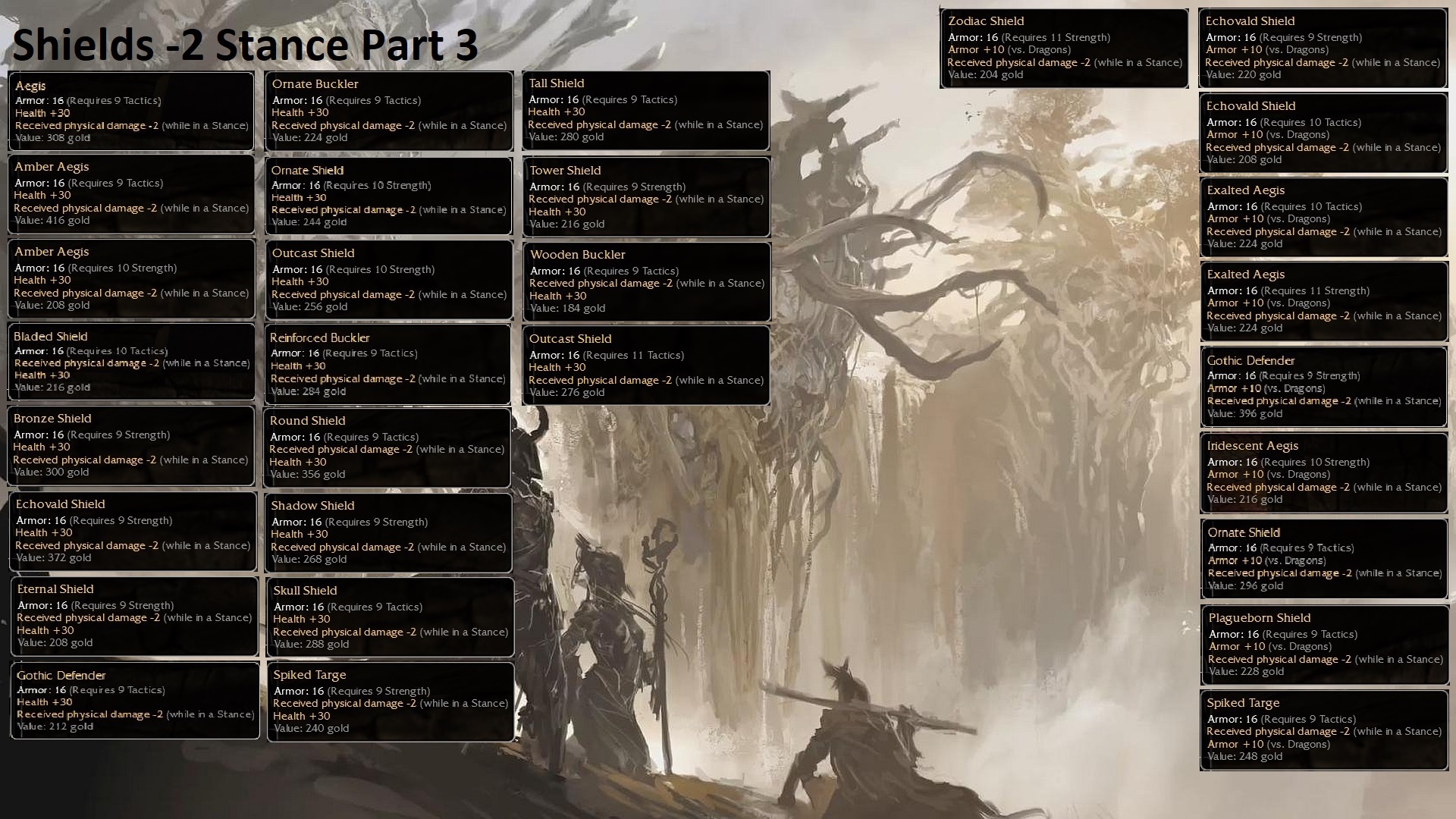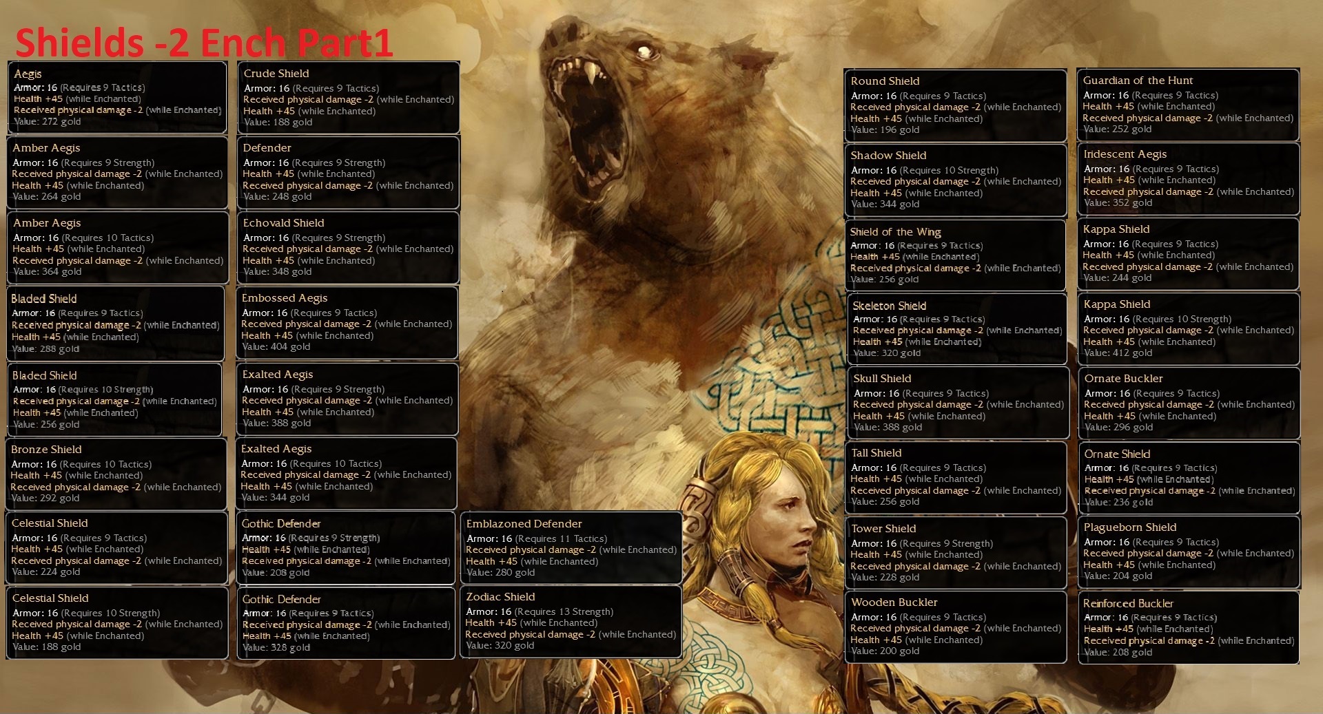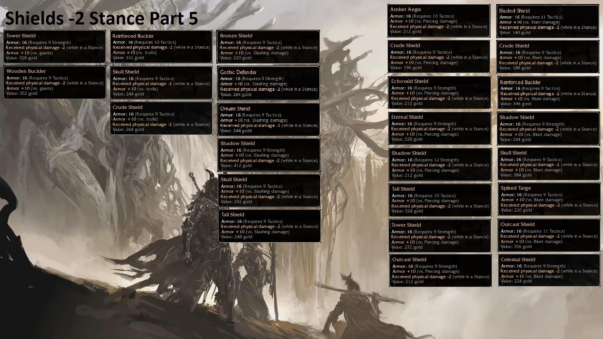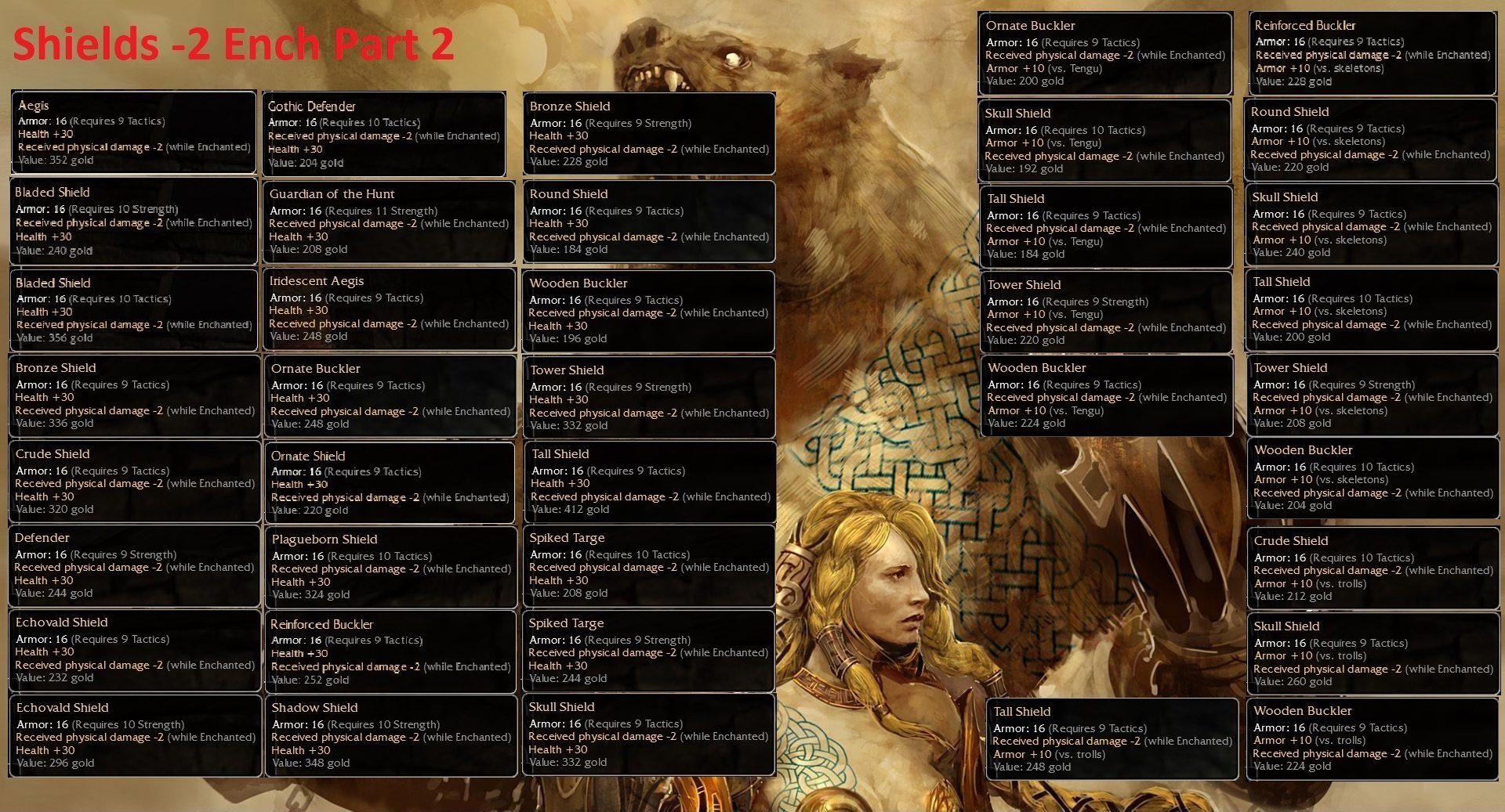 July 20, 2023 at 3:54 PM #1 Hello,Some of you ask me to see my all collection of shields, so just for your eyes -2 ENCHANT-2 STANCE+30 Hp+45 ENCHANT+45 STANCEOTHER MODSEnjoy