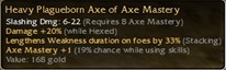 Returning player after a long time. Found this very nice gold Heavy Plagueborn Axe q8 of Axe Mastery (19%), with +20% damage while hexed. I want to sell this because I'm not a collector of these kind of weapons myself, but I hope someone will be very happy with this. Curious to see your bids!