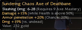 Lengthens Poison Duration on foes by 33%, Axe Mastery +1,Show me the money