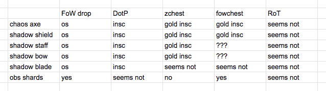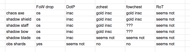 It is indeed odd about shadow blades and zchest/fowchest, but till I get a reputable testimony, I can't say...What is DotP? ah nvm! found it!