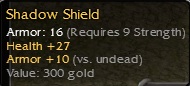 close/closed Shadow Shield q10 str +30hp +10ar vs undead