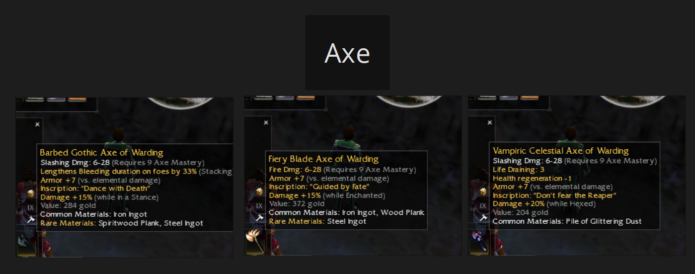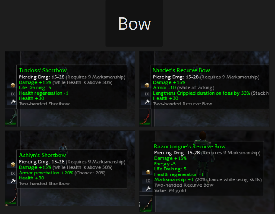 Akhrylics' Store - Insc golds (Dryad Bow/ Clockwork Scythe/Topaz Scepter etc) // Greens