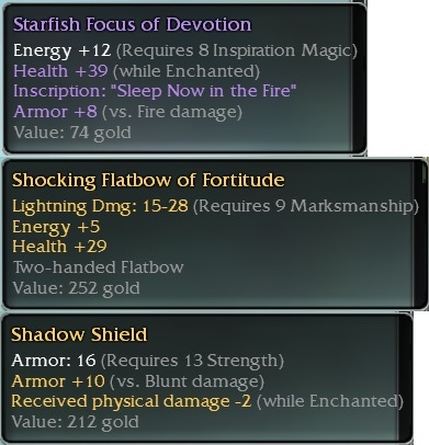 [Close] PC q8 Inspiration focus | q9 Flatbow +5 | q13 Shadow Shield +10 vs. blunt/-2 while enchanted