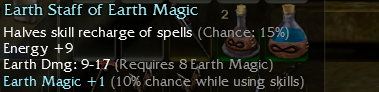 Inscription -1 Dmg while EnchantedStaff Handle +1 Earth Magic (10%) sold to 1e Ecto Sacrifice