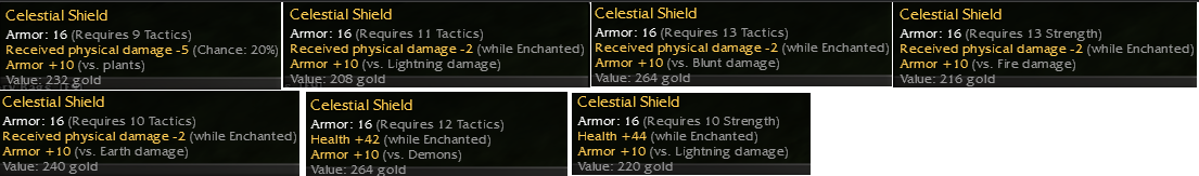 November 18, 2024 at 3:10 PM #1 Hi all,Selling off these oldschool celestial shields. +10 armor's : Reduced condition :Received Physical dmg -2 / +45^Ench/Stance / +57^Hex : Hope you find something you like.A1 & A13 soldReserve the right not to sell.