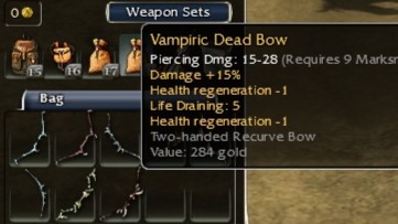 q7 insc shortbow or flatbow, q6 insc or 15we daggers, q10+ skull shield or equivalent skin +10 undead +30hp